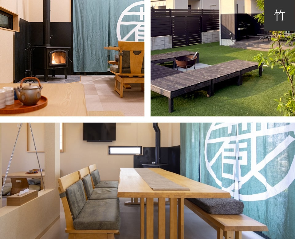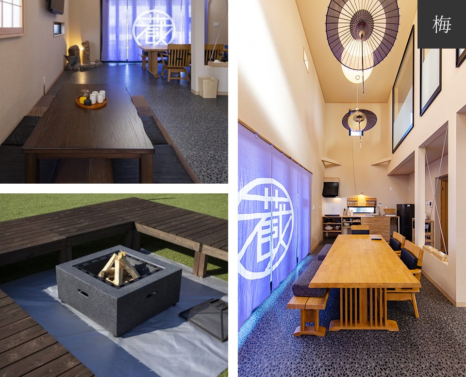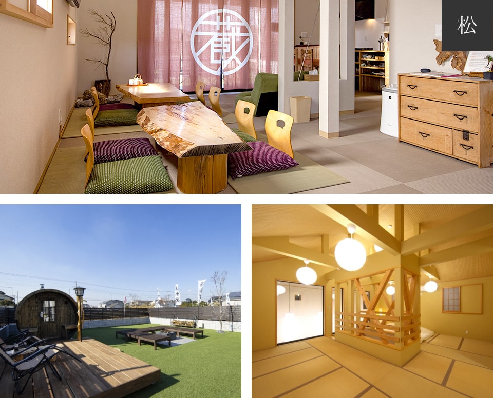 どこか懐かしく、日本ならではの風情を感じられる「蔵」には「松・竹・梅」と、3棟の和風貸別荘が立地しています。