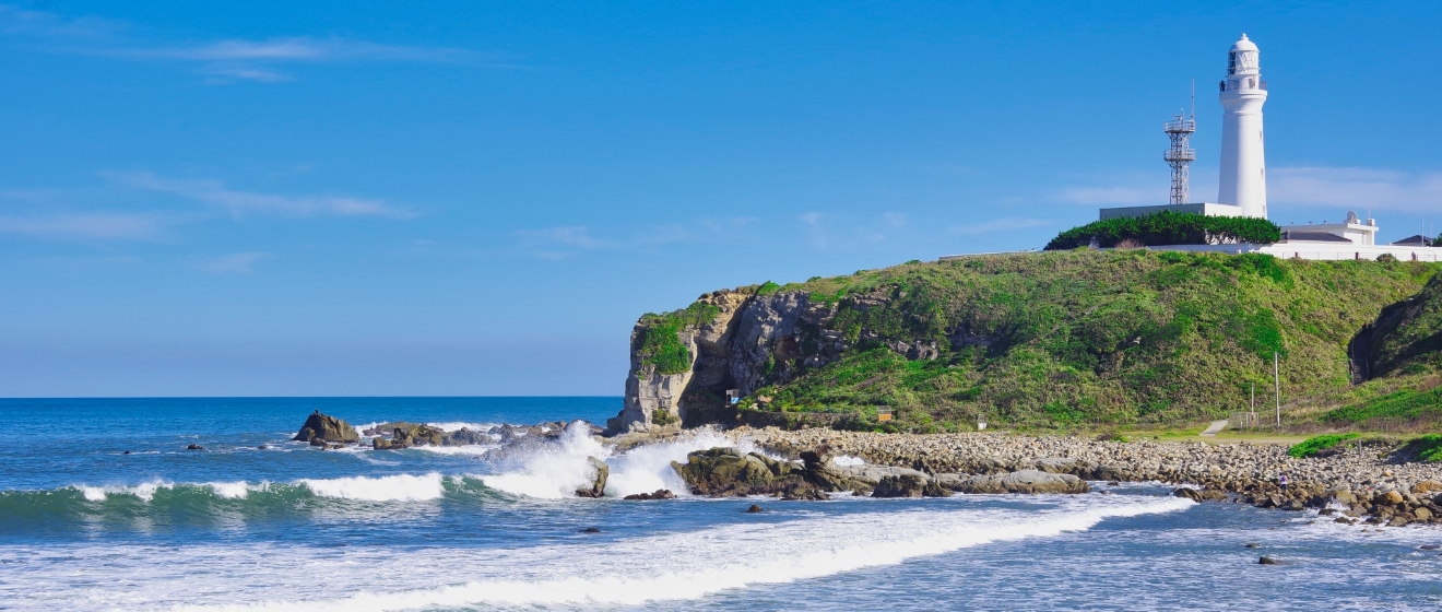 近隣の海水浴場ではマリンレジャーを楽しむ人たちも多く、海岸沿いでのドライブは気分爽快です。「夫婦岩」や「太東埼灯台展望台」などの広大な絶景ポイントも多数。